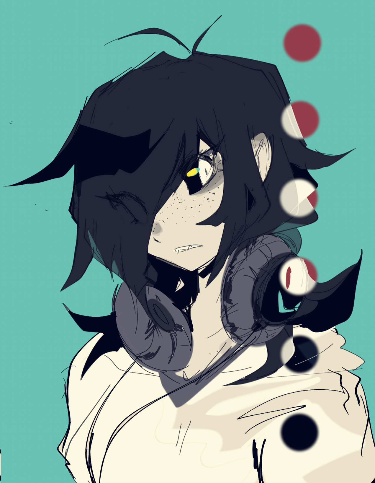 Ash is a fairly run-of-the-mill college dropout possessed by an ageless, voracious demon. The circumstances of their meeting was nothing short of coincidence, but they have since become inseparable. The demon, who Ash had come to call "Soot", was initially hell-bent on consuming the bodies and souls of the kind that damned him, but found itself enamored by the humans' culinary mastery. Residing latent and relatively passive within the girl's body, it feeds off her life force in exchange for morphing and enhancing her physical traits; a fair trade in Soot's eyes, though Ash finds its meddling more inconvenient than anything.